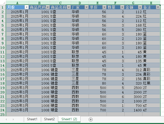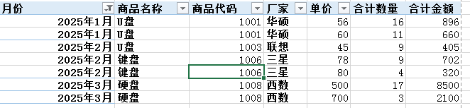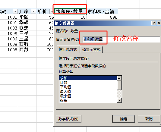 修改列名称为“合计数量”、“合计金额”