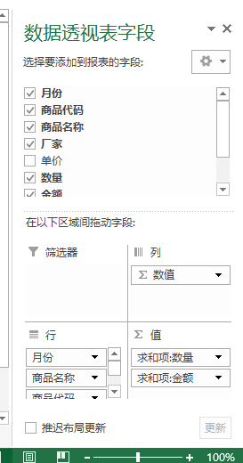 金额 → 汇总方式:求和